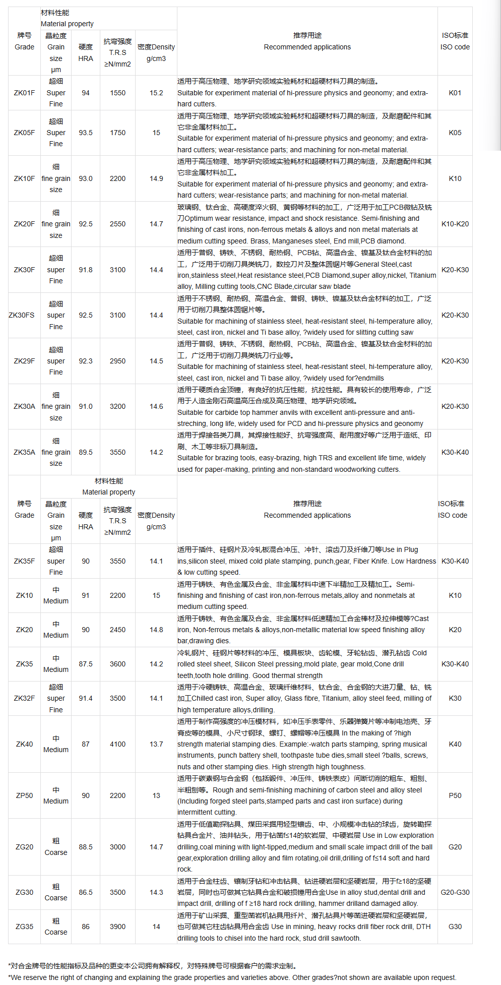 常用硬質(zhì)合金牌號(hào)/Carbide Grades and Specifications